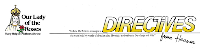 Sebagai Ibumu, Pengantara antara Allah dengan manusia, aku berseru kepadamu. Dengarkanlah aku, dan bertindaklah seturut petunjuk dari Surga. Selamatkanlah dirimu dan anak-anakmu. Hanya ada sedikit waktu yang tersisa.
